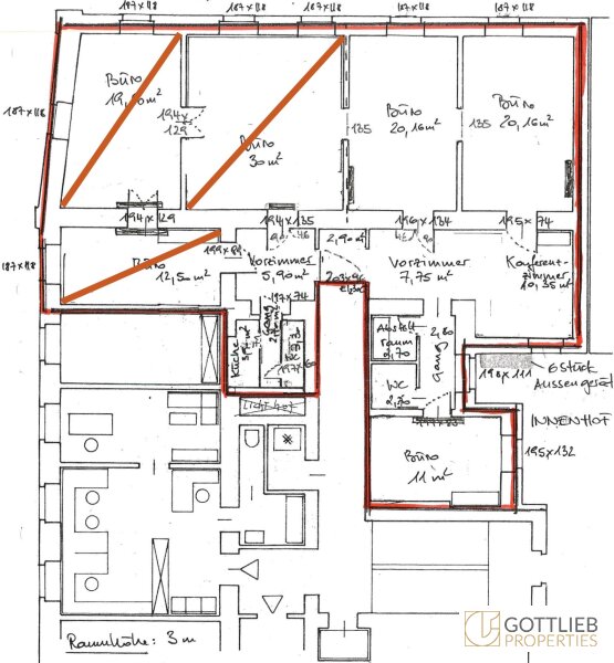+ zwei nebeneinander liegende Büroräume mit jeweils ca. 20,16 m²