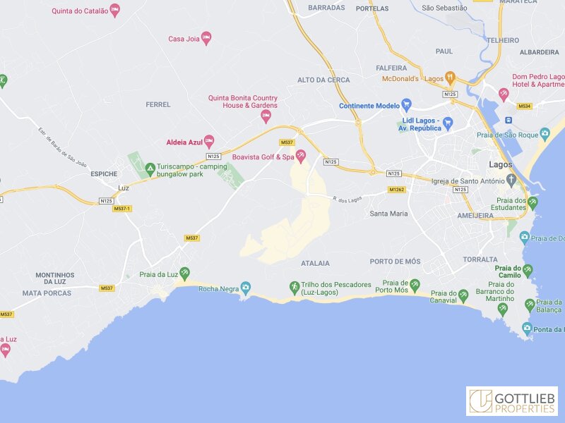 Die in unmittelbarer Nähe gelegene, größere Nachbarstadt Lagos wurde im Jahre 2021 zu einer der schönsten Städte Portugals gewählt. Lagos ist für ihre historische Altstadt mit Stadtmauer, ihre Klippen und ihre atemberaubenden Atlantikstrände bekannt. Die Sandbucht Praia do Camilo erreicht man nur über steile Holztreppen.