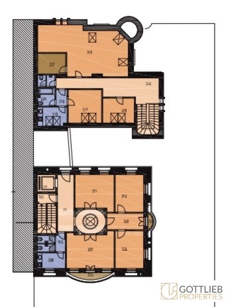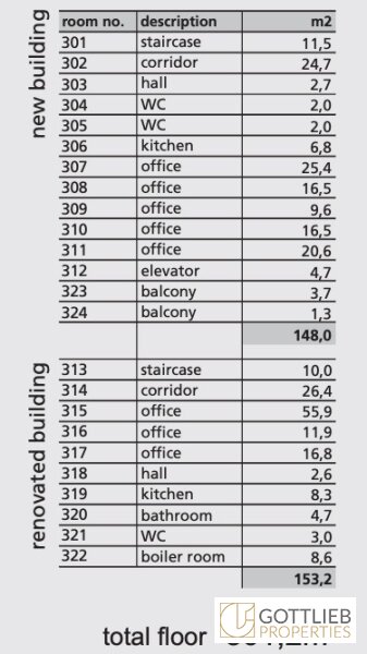 + ca. 309 m² in den zwei obersten Stockwerken des Neubaus