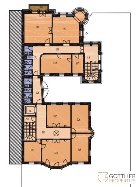 Die ostwest-seitig ausgerichtete Liegenschaft besteht somit aus zwei miteinander verbundenen Trakten - der historischen, liebevoll renovierten Gründerzeit-Villa sowie einem modernen, geräumigen Zubau, welche sich für die Nutzung als Bürokomplex oder für Gemeinschaftspraxen hervorragend anbietet.