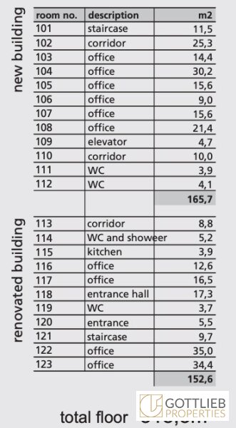 Das gesamte Objekt umfasst auf insgesamt vier Ebenen Büros, Meeting- und Nebenräume sowie eine große Freifläche im Innenhof mit 15 Auto-Abstellplätzen.