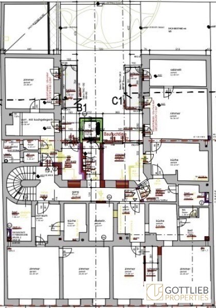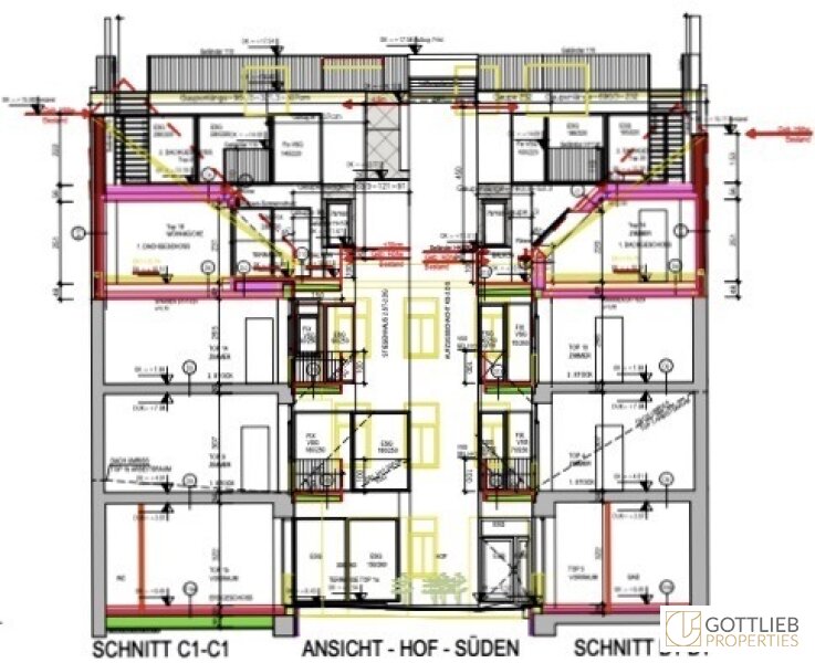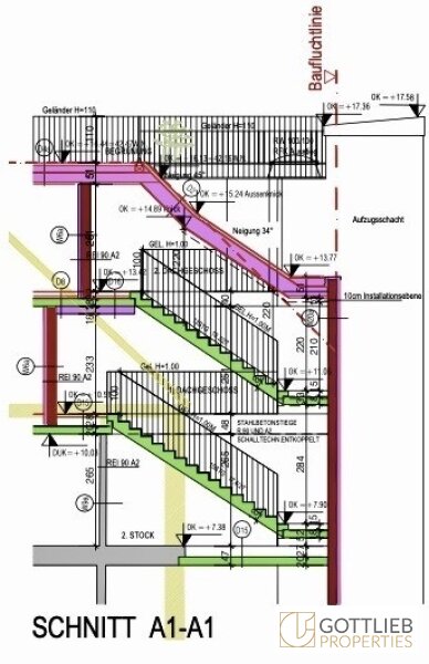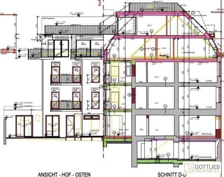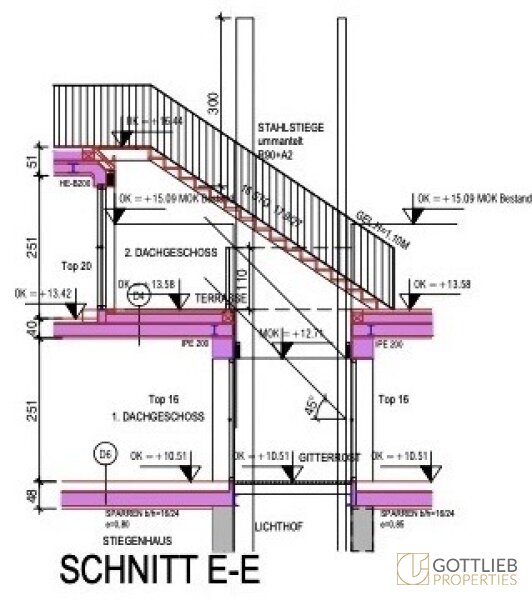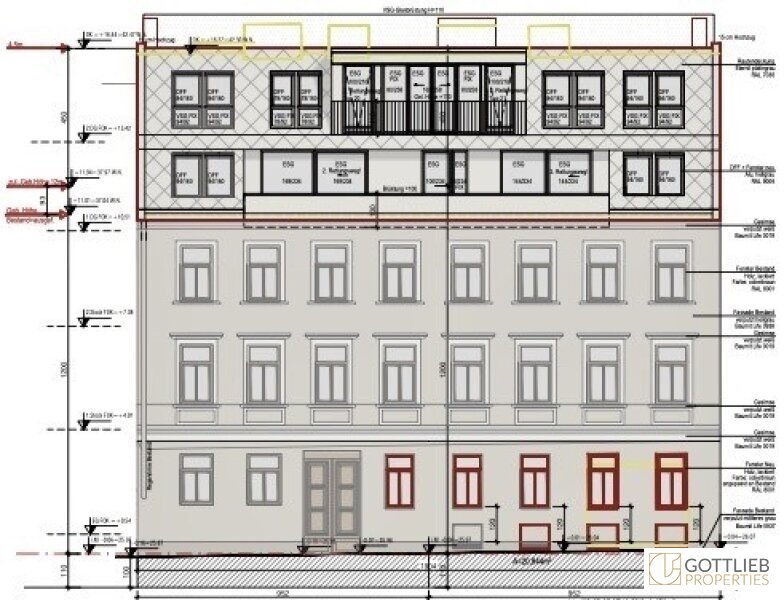 + Abbruch des bestehenden Dachgeschosses und Aufstockung eines 1. und 2. Dachgeschosses zur Erweiterung auf insgesamt 17 Wohnungen mit ca. 1.059,28 m² Wohn-Nutzfläche sowie Terrassen und Balkone von 264,40 m²