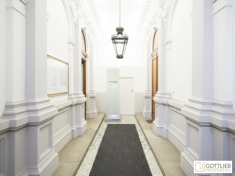 Unmittelbar bei der Börse und beim Hermann-Gmeiner-Park in einem wunderschönen, im historischen Stil erbauten Haus mit gegliederter Fassade kommt diese in den Jahren 2009/10 erbaute, sonnendurchflutete Dachgeschosswohnung mit großzügiger Terrasse zur unbefristeten Vermietung. Das in den Jahren 1872–1873 erbaute Gebäude besitzt ein äußerst repräsentatives Foyer mit einer bemerkenswerten Deckenlaterne aus Schmiedeeisen, Ätzglasverzierung und Kronenaufsatz.