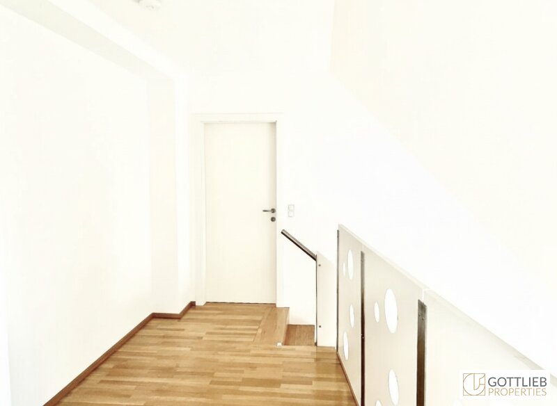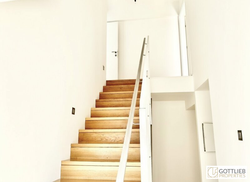 Durch einen Vorraum mit angeschlossener Gäste-Toilette gelangt man in den großzügigen, offenen Wohn-Ess-Bereich mit integrierter Küche sowie ein Schlafzimmer. Über eine beleuchtete Treppe erreicht man das Obergeschoss wo sich ein Galeriezimmer, ein geräumiger Abstellraum sowie das Badezimmer befinden.