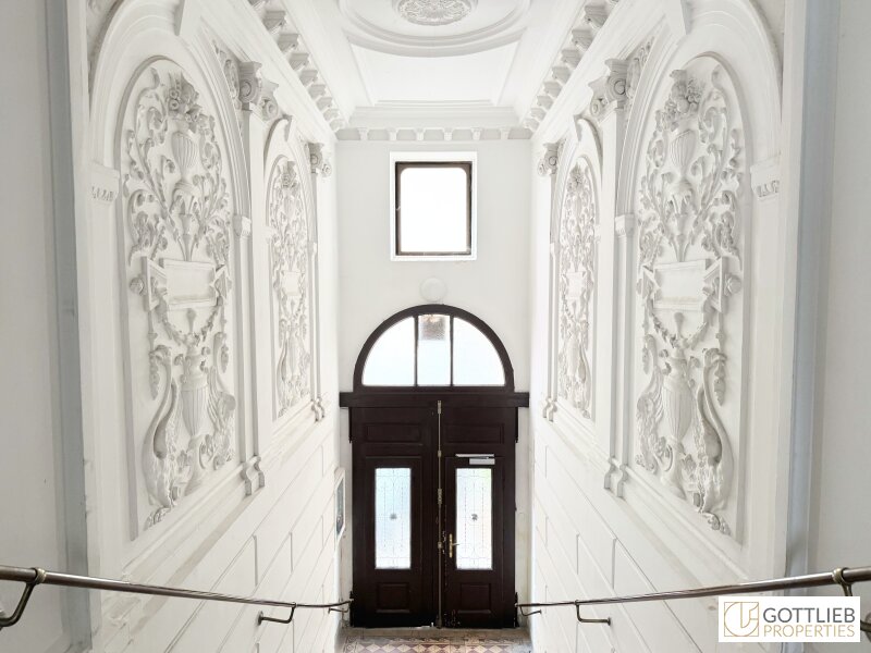 Zur sofortigen Vermietung gelangt eine lichtdurchflutete Dachgeschoss-Maisonette-Wohnung mit Dachterrasse in einem wunderschönen Jahrhundertwende-Stilaltbau mit prachtvollem Entrée.