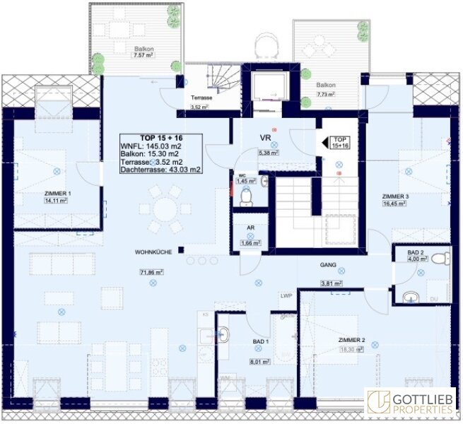 - ca. 43,03 m² Dachterrasse