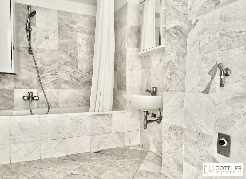 + ca. 5,31 m² Wannenbad mit Waschbecken, Handtuchwärmer sowie Waschmaschinen-Anschluss