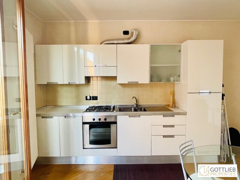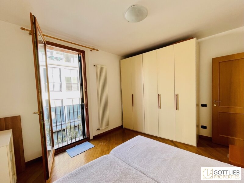 Das Apartment befindet sich im zweiten Liftstock eines modernen Gebäudes, das im Jahre 2004 von dem berühmten Mailänder Architekten Cino Zucchi erbaut wurde. Die Renovierungsarbeiten an der Fassade und der Gemeinschaftsterrasse wurden soeben fertiggestellt.