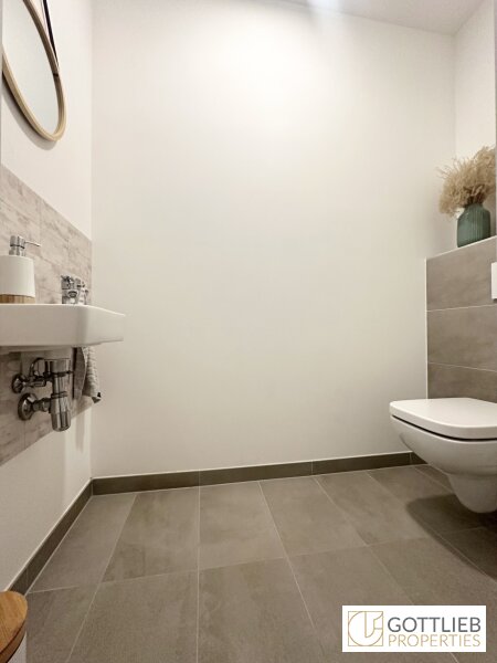 - Handwaschbecken der Marke Geberit in der Toilette