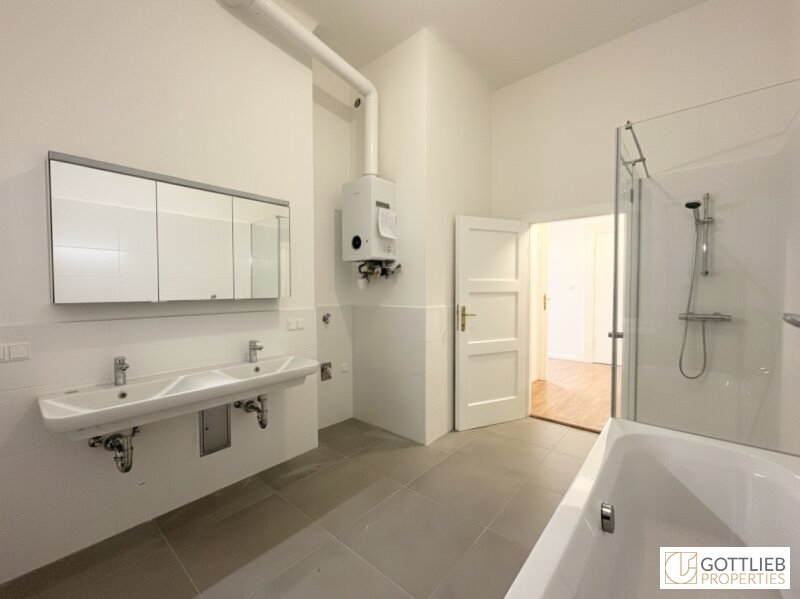- Tageslichtbad mit Wannenbad, Dusche, Doppelwaschtisch und Waschmaschinen-Anschluss