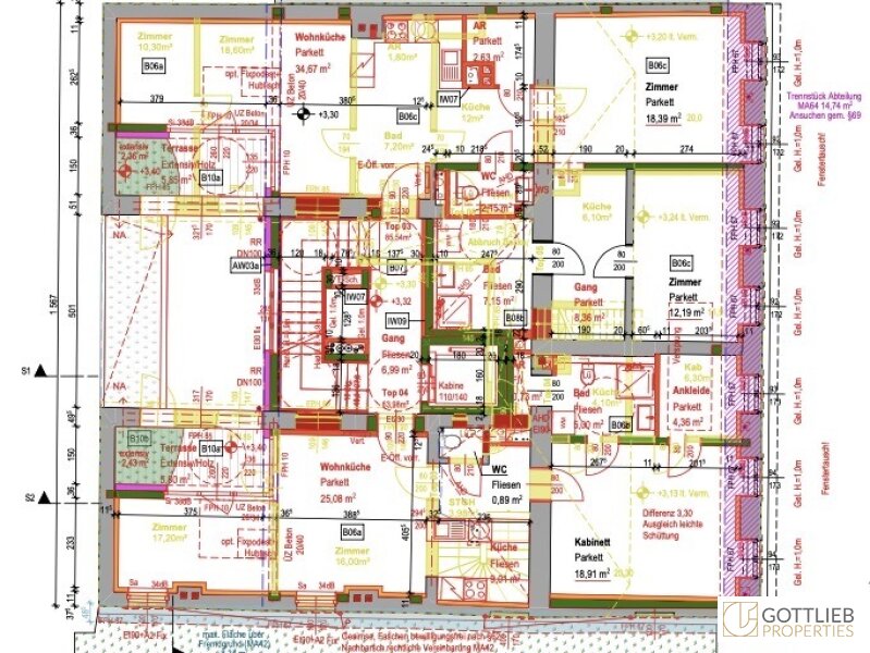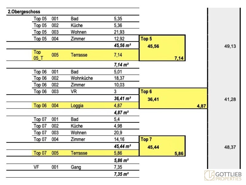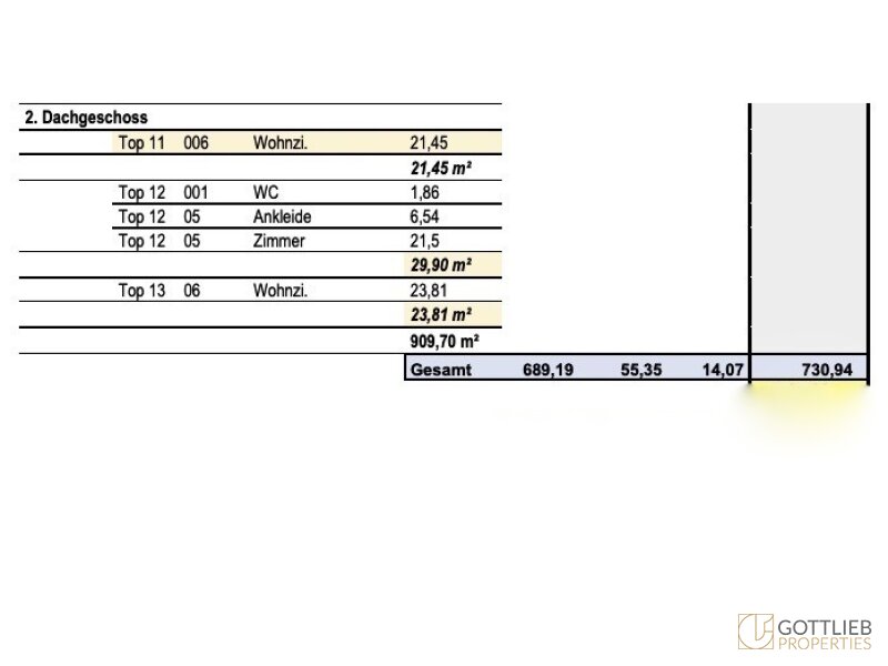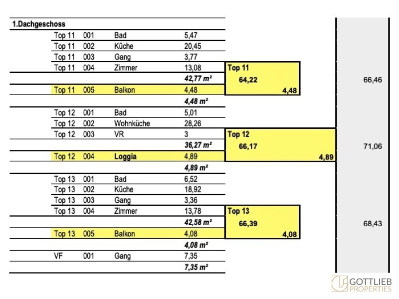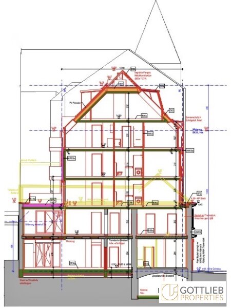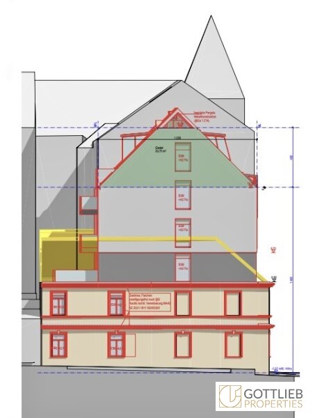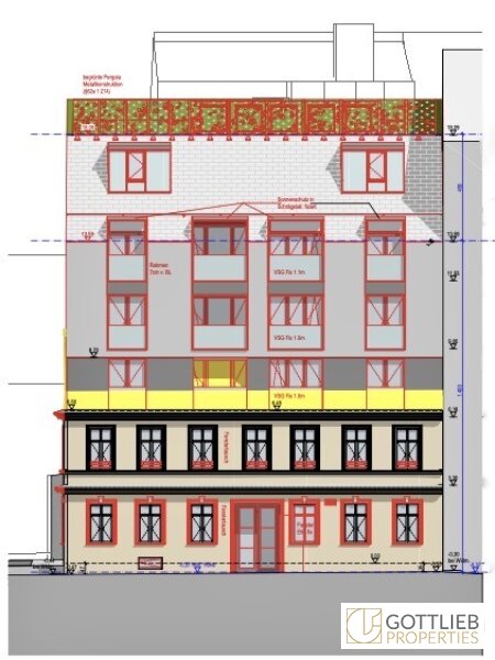 Eine Baugenehmigung zur Abtragung der bestehenden Dachkonstruktion und den Ausbau des Dachgeschosses sieht eine Aufstockung um zwei Festgeschosse - zweiter und dritter Stock – vor, welche zusammen mit dem ersten Obergeschoss insgesamt acht neue Wohneinheiten ermöglicht. Der Ausbau von zwei Dachgeschossen sieht weitere drei Etagenwohnungen vor. Durch den Um- und Ausbau ergibt sich eine Wohnnutzfläche von gesamt ca. 730,86 m². Alle Wohnungen sind entweder mit Balkonen, Terrassen von gesamt ca. 55,35 m² oder Loggien im Umfang von insgesamt ca. 14,07 m² ausgestattet.