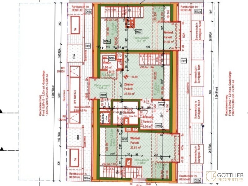 - straßen- und hofseitig gelegene Terrassen, Balkone und Loggien mit einer Größe von ca. 69 m²
