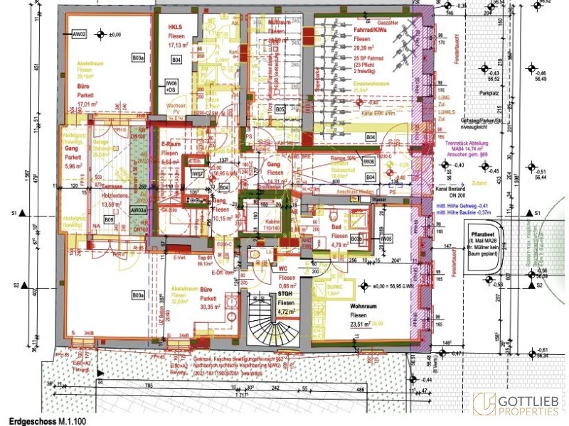 Im Erdgeschoss ist die Errichtung von Büroräumlichkeiten geplant.