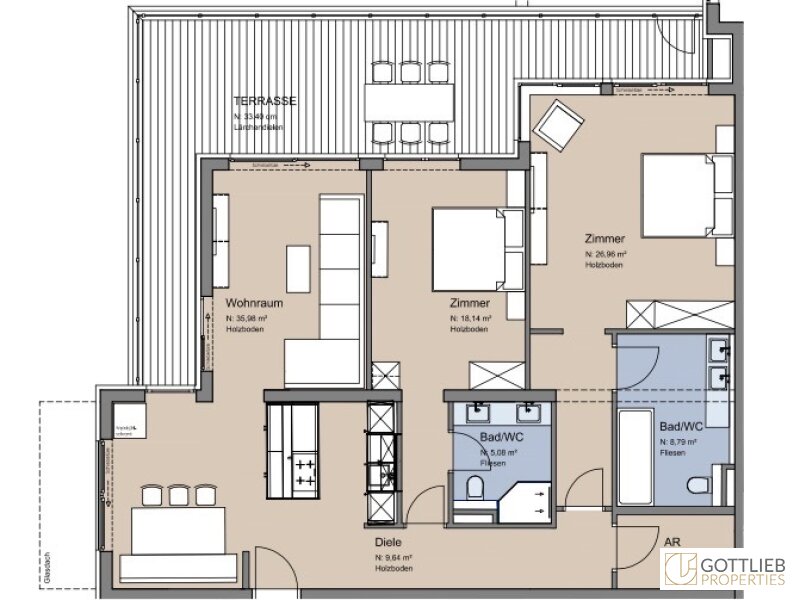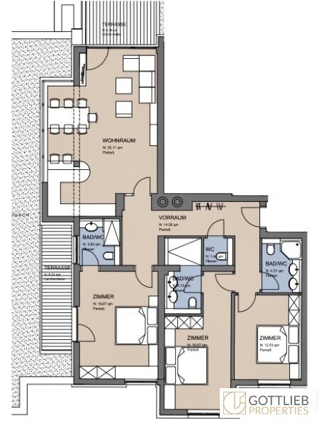 - ca. 88,49 m² Terrassen