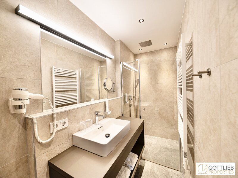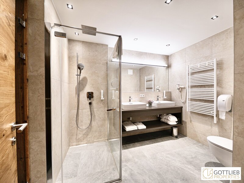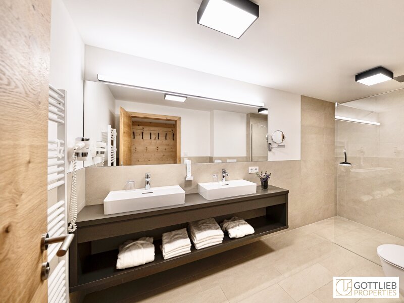 - Bäder mit bodengleichen Duschen, Waschbecken, Handtuchwärmer sowie Toilette